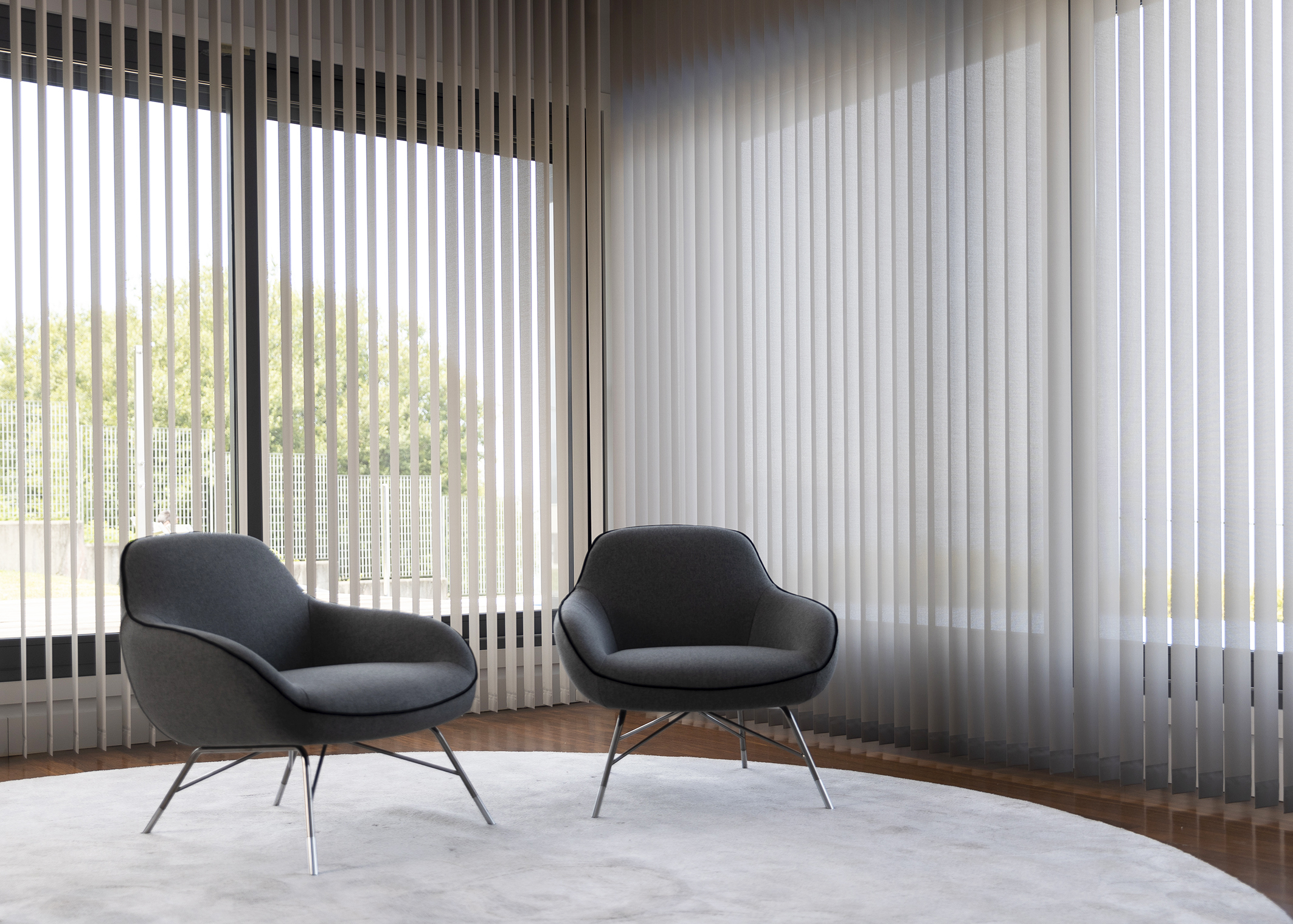Su sistema de lamas permite graduar la entrada de luz en cada momento, proporcionando un perfecto confort visual que, combinado con la variedad de tejidos técnicos y decorativos de Bandalux, hacen de la cortina vertical una solución muy atractiva.